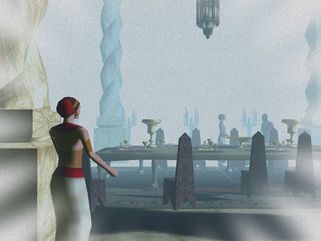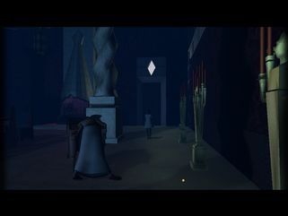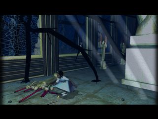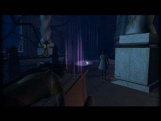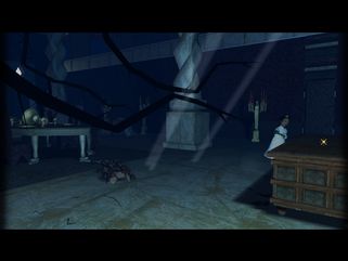 |   Demo 1: The Formal Dining Room Walkthrough  The demo starts with the girl coming from the Salon. She waits for your instructions. In “8”, the main character and the player are independent of one another. Move the camera around the room with the cursor keys for motion and the mouse for steering. You can also just look around while standing still by moving the cursor to the edges of the screen or by holding down the middle mouse button or the shift key and moving the mouse. Left click will tell the girl to go there. Left hold down will make the camera follow her.   Move towards the corner of the room to the left of the girl. Against a column you will find a servant breathing heavily in her sleep with sparkles around her head. This is a Restless Sleeper. Since the girl has already acquired the Spell of Telepathy, she can see the dreams of Restless Sleepers. When you move the cursor over the head of the servant, it will change into a wand.   Left click and hold down to make the girl walk into position and prepare for casting the spell. When you think she has prepared enough, release the mouse button and she will cast the spell.   You can see a non-interactive animation that tells you what has happened in this room in the past that troubles the servant in her sleep.   A plate appears to be missing from the table setting.   On the cart upon which another servant hangs sleeping, there is a pile of dishes. Move the camera towards it and move the cursor over the dishes. One of them will light up signifying that it is an object that can be used. Right click on it to have the girl pick it up.   Go to the table and right click on the empty spot that lights up yellow. The girl will put the plate down. But apparently it's the wrong plate. You can try again: the pile on the cart contains a never ending supply of dishes.   On the cart with the plates, a flower lies on the hairs of the sleeping servant. The Tailor Prince left it there after combing the hairs of the woman. It can be used to fulfill another mission elsewhere in the game. Right click on it to have the girl pick it up.   Right click anywhere to make the girl put the flower there. This way you can collect objects for easy retrieval later.   In the corner of the room where the branches of the Evil Forest have broken through the window, a candelabra has fallen over.   Some of the candles have fallen out of it. These can be taken by the girl. And there is a bunch of rocks that can also be taken. Throughout the game world, there will be many objects like this that serve no mission-related purpose. The player can collect them, make patterns on the floor with them, etcetera.   Right click on the girl to have her show you the object in her hand.  All materials are and © Michael Samyn and Auriea Harvey, 2003. No reproduction or copying without explicit permission of the authors. | This demo plays in one room of the enchanted palace of Sleeping Beauty, called the Formal Dining Room. It is here that the table was set to receive the fairies when the princess was born. Alas, there was one golden plate too little and as a result the ninth fairy was not invited, with the dire consequences we all know. It will be the task of the player to help the girl find a golden plate elsewhere in the palace. This demo is situated in the beginning of the game. The girl has acquired only one spell, the Spell of Telepathy (signified by the tiara on her head). MINIMUM SYSTEM: Windows 2000 or XP 1.5 Ghz CPU 256 MB of RAM Geforce 4 DirectX 8.1 Sound Mouse |
