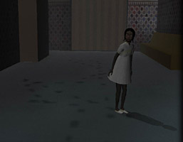 The palace environment is mostly orientalist in style. It is very warm, enternally late morning. There is a glaring sun and deep dark shadows. The garden is an oasis but the courtyard is barren and hot. Inside the thick walls of the palace, it is cool. The forest of thorns has grown excessively and has penetrated the palace here and there, causing destruction to the building.