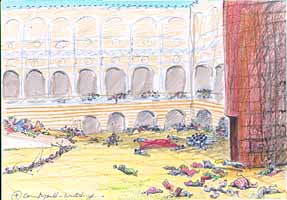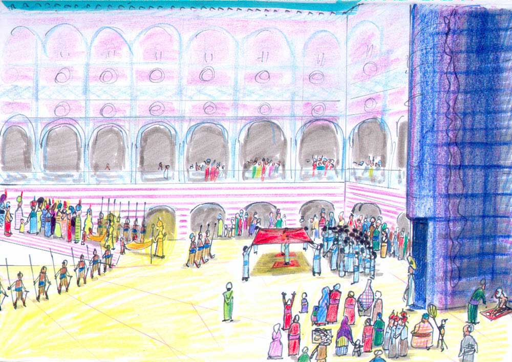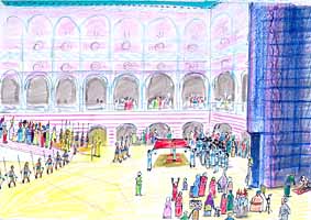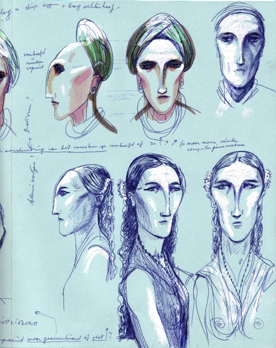 Gorik has focussed on the courtyard and the life the palace. While having been at least as obsessively active as Lina, his work was never as focussed and we did not succeed in making him nail down everything to a point where modellers could really work with it. But his contributions to the realization of a believable game world have been invaluable. We have decided to work again with him later on these concepts.