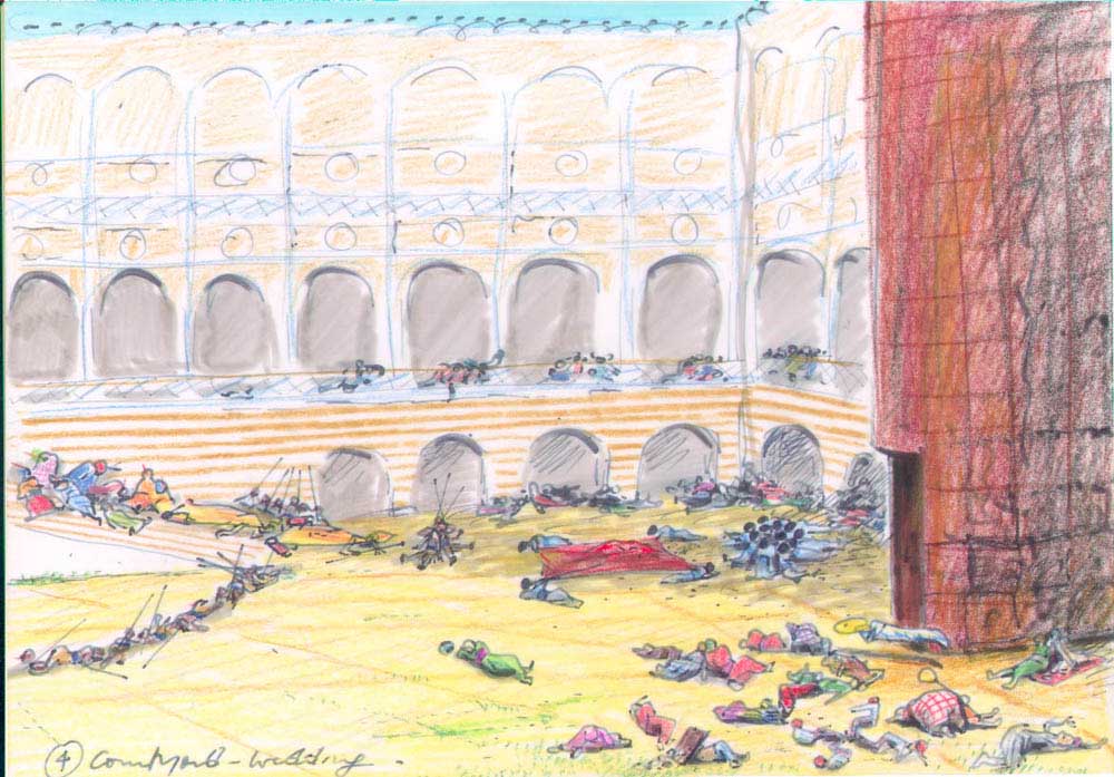 Before everyone fell asleep, a wedding was taking place near the Chapel in the Courtyard.