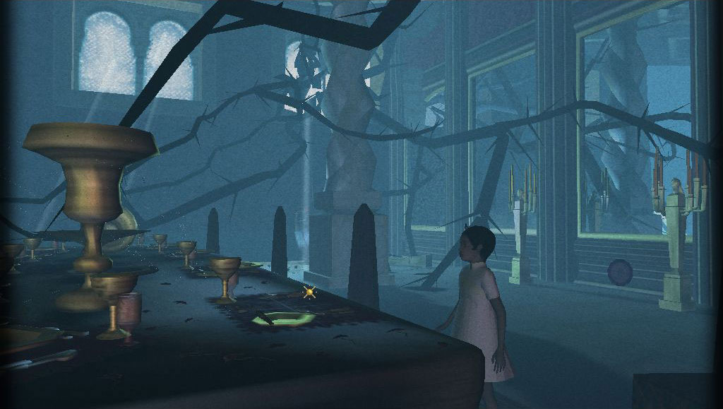 After a first redesign of the game engine and with some help of a professional 3D artist, we presented a first polished demo of our game in October 2003, called “The Formal Dining Room”. We used this demo to thoroughly test the game's interfaces and the response to the aesthetic style we were starting to develop. It was this demo that was shown in the Utrecht Level Up Conference of November 2003.